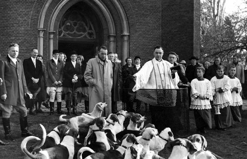 Zesgehuchten 1951– De pastoor spreekt een hartig woordje met een meute jachthonden.
