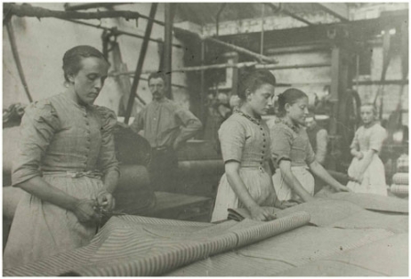 Fabrieksmeisjes bij de weverij Bogaers te Helmond, ca. 1900.