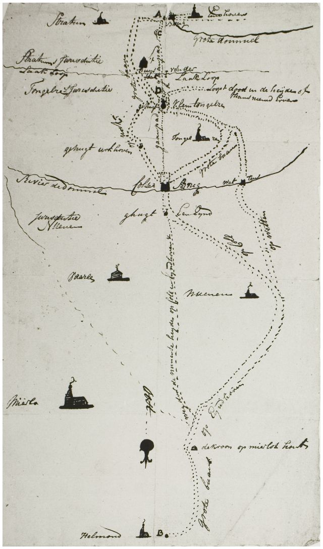 Bij zijn brief stuurt hij een ruwe schets waar Eindhoven met een “A” en Helmond met een “B” is aangeduid. Een nieuwe weg tussen beide plaatsen, gericht op de kerktorens zoals men dat toen vaak deed, kon niet worden aangelegd. Eindhoven was toegankelijk vanaf het zuiden en in Helmond kwam men via de Kromme Steenweg met een haakse hoek op de Steenweg. De verbinding tussen Helmond en Eindhoven liep uiteindelijk over Mierlo-Hout. Via wat nu de Burgemeester Krollaan is, kwam men via Medevoort, daar waar nu de Brandevoortse Hoeve aan de Brandevoortse Dreef ligt, uit op de Helmondsche Dijk. Van daar kon men via Eeneind naar Coll en Eindhoven, of via de Beekstraat naar Nuenen. Vaarle liet men, zoals men op de schets ziet, geheel links liggen. Op 25 november 1803 krijgt Carel Frederik Wesselman vergunning voor het oprichten van “eene koren branderij of genever stookerij” te Helmond en Vaarle met gebruik van granen of aardappelen. Of er op Vaarle ooit gestookt is, lijkt vanwege de afgelegen ligging onwaarschijnlijk. Dat deed Wesselman wel in zijn Helmondse kasteelkelder. Vaarle was meer geschikt voor de schapenteelt. Een telling in 1807 geeft een totaal van 180 schapen, rammen en lammeren en nog 36 oude schapen om vet te mesten. Een jaar later is het totale aantal al gestegen naar 336. Nu nog vinden we op Vaarle schapenhouder Rob Adriaans; hij werkt dus in een oude traditie met zijn eigen gefokt ras, dat hij naar het landgoed Gulbergen het Gulbergenlam heeft genoemd.